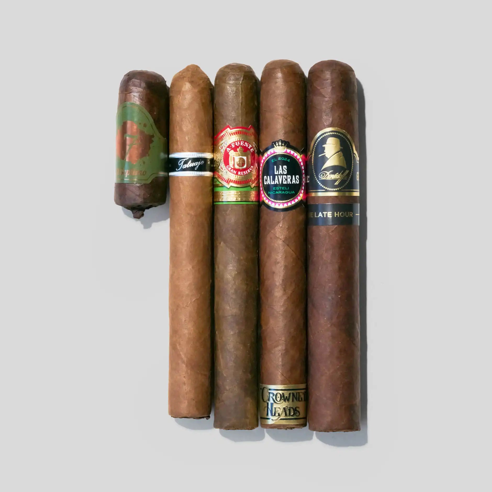 The Connoisseur's Edit is a carefully curated cigar bundle designed for seasoned aficionados who appreciate diversity, craftsmanship, and exceptional flavor progression. This exclusive selection features ten distinguished cigars from some of the world's most respected houses, each chosen to represent a unique style, origin, and smoking experience. 1. El Septimo The Luxus Collection Extreme Shot Green (2" × 56 RG): Begin with a bold yet compact introduction. This short-format cigar delivers immediate richness and intensity, offering notes of roasted coffee, dark cocoa, and subtle spice. Its concentrated profile awakens the palate, setting the tone for a journey of depth and refinement. 2. Arturo Fuente Gran Reserva Flor Fina 8-5-8 Maduro (6" × 47 RG): Transition into classic elegance. The Maduro wrapper provides a smooth, velvety smoke layered with notes of sweet cedar, dried fruit, and cocoa. Exceptionally balanced and approachable, this cigar showcases the timeless craftsmanship that defines Arturo Fuente. 3. Tatuaje Black Label Private Reserve Corona Gorda (5 5/8" × 46 RG): The journey deepens with structure and complexity. Expect rich earthiness, black pepper, and espresso, complemented by a refined spice that builds steadily. This cigar adds intensity while maintaining sophistication and control. 4. Davidoff Winston Churchill The Late Hour Toro (6" × 54 RG): Enter a realm of luxurious depth. Aged in Scotch whisky casks, this expression reveals layered notes of dark chocolate, leather, oak, and subtle sweetness. Smooth, bold, and contemplative, it marks the heart of the tasting journey. 5. Crowned Heads Las Calaveras Edición Limitada 2024 LC 48 (6" × 48 RG): Conclude with a statement of power and rarity. This limited-edition release delivers bold flavors of spice, roasted nuts, earth, and a lingering richness that leaves a lasting impression. It serves as a fitting finale that celebrates strength, craftsmanship, and exclusivity. Perfect for personal indulgence, guided tastings, or as a refined gift, The Connoisseur's Edit offers a journey through craftsmanship, rarity, and flavor—an essential selection for those who demand excellence in every draw. Elevate your cigar experience with The Connoisseur's Edit, where expertise, balance, and luxury converge.